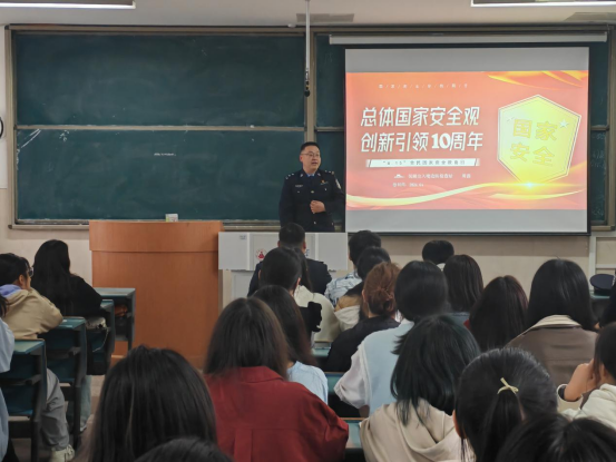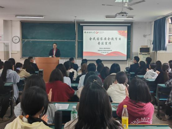 4月12日,学院邀请芜湖市出入境边防检查站一行,于行知楼2040105教室为同学们上了一堂全民国家安全教育日普法宣传课。课上,芜湖市出入境边防检查站周警官以习近平总书记提出总体国家安全观十周年为契机,向同学们详细介绍了国家安全的概念、国际国内形势、以及国家安全相关法律常识,希望同学们能够履行好维护国家安全这一责任与义务,坚定爱国立场。
