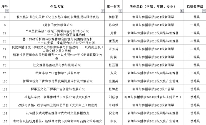 近日,校第七届本科生科研论文大赛评审结果揭晓,德赢AC米兰合作伙伴共有14名同学获奖,其中2014级新闻学专业何修豪的《徽文化符号在纪录片< 记住乡愁>中的多元呈现与独特表达》、陈晓煜的《A周刊的女性报道研究》获一等奖,学院获优秀组织奖。