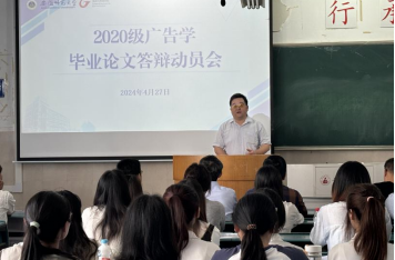 2024年4月27日下午,2020级广告学专业在行知楼2号教学楼正式进行毕业论文答辩。答辩开始之前,学院老师和同学们一起开展了答辩动员会,副院长赵昊老师作动员讲话,他肯定了广告学专业多年来在教风、学风上取得的成效,勉励同学们利用毕业论文写作、专业知识探究、答辩等契机,勇于超越自我,不断提升自己理论水平。副院长秦枫老师、广告学专业沈幼平老师和芮宏明老师分别对同学们寄语,不仅肯定了同学们在毕业论文撰写中的认真表现,也祝愿同学们答辩顺利,还对毕业选择不同人生方向的同学都给予了祝福,表达了深情的关怀。