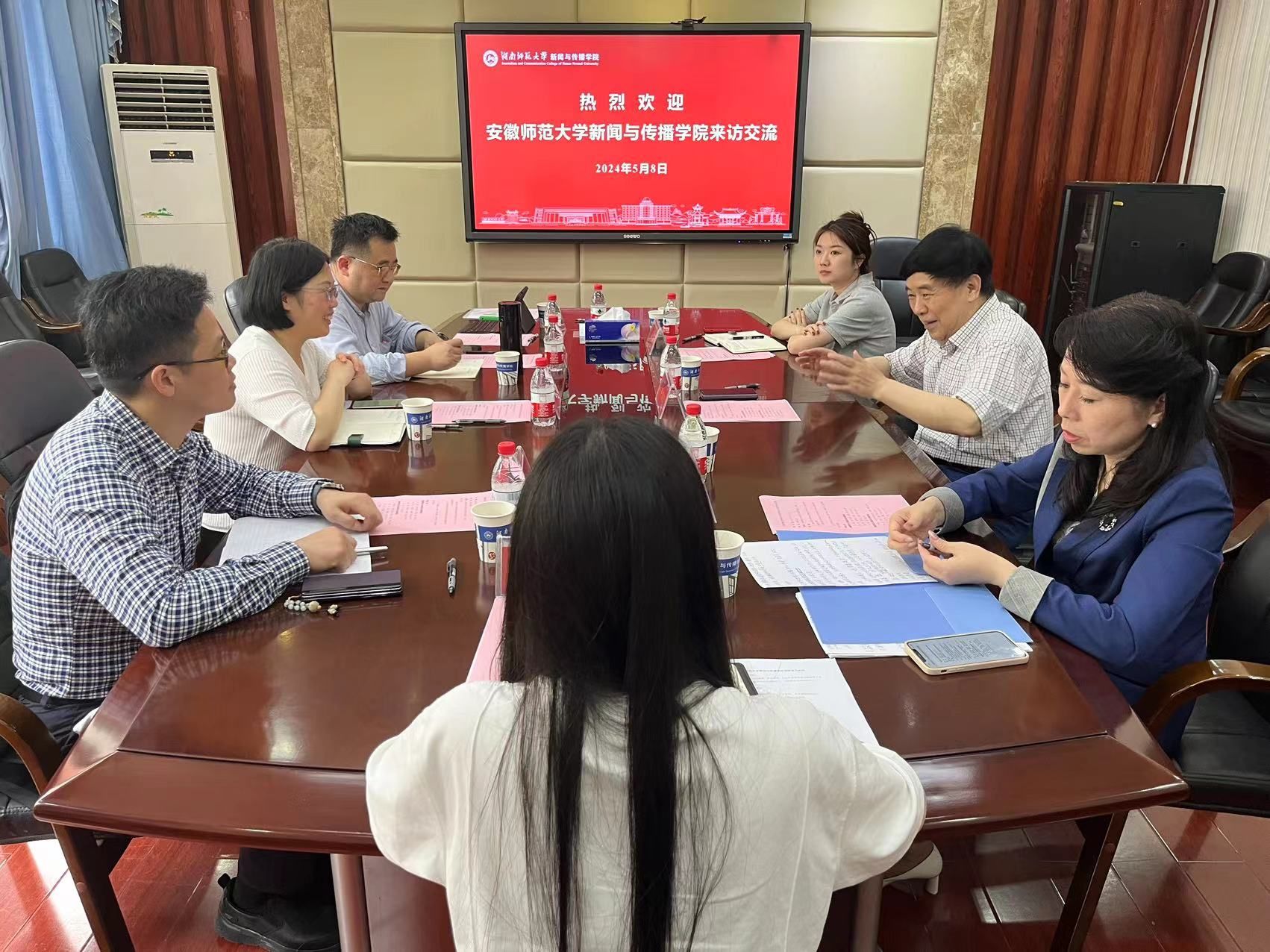 双方共同探讨了部校共建的合作模式,分享了近年来共建经验,以及与地方政府、企事业合作的相关案例。在人才培养方面,双方就课程设置、实践教学、学生实习就业等方面进行交流。在本科教育教学审核评估方面,湖南师范大学德赢AC米兰合作伙伴介绍了他们的具体做法和经验,包括评估标准、组织评估工作等,学院一行表达了对其评估工作的认可,并希望能在未来的评估中加以借鉴。在学科建设和科学研究方面,双方就博士点申报、科研能力提升、学科发展方向、数字赋能新闻等话题展开交流,双方达成一致,将进一步加强合作,共同推动学科发展。