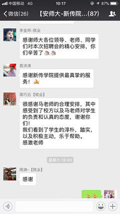 当天下午包括江苏乐易学、江苏庄泰医药等多家企业在大学生活动中心开展了专场宣讲会或进行了现场选拔。本次招聘会还组织了院学生会同学、2014级毕业班党员和2015级党支部党员同学在活动前后和活动现场提供志愿服务,周到、贴心的服务得到了用人单位的一致好评。