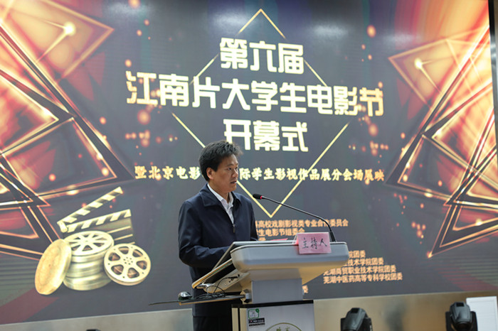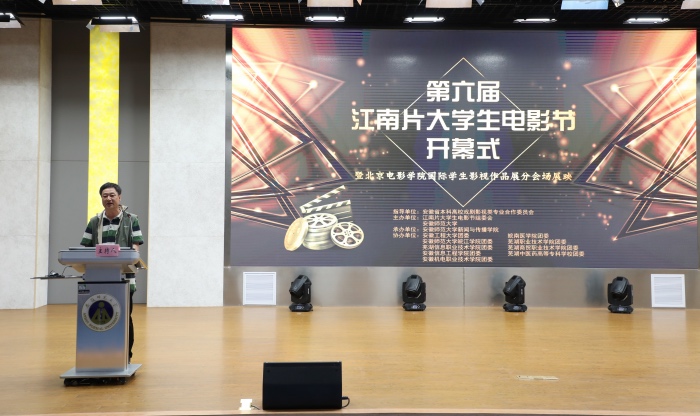 第六届江南片大学生电影节,在“电影梦 青春梦 中国梦”主题宣传片中拉开帷幕,现场师生共同回顾了历届电影节的精彩瞬间和成长历程。电影节的举办汇聚了各大高校的青春力量,来自中国传媒大学南广学院广播电视编导专业王临赞作为参赛学生代表发言,他感谢江南片大学生电影节提供给热爱电影创作和制作的青年人以造梦的空间,表示将倍加珍惜电影节给予的学习和交流平台,争取拍出好电影参加比赛。何村在致辞中高度肯定了江南片大学生电影节在引领高校学子电影创作之风潮的积极影响力,认为该电影节填补了安徽省高校大学电影活动的空白,又为全省大学生影视艺术活动的开展树立了良好的榜样,他鼓励在场的热爱戏剧影视的学子们:“电影的未来必定属于青年人”!