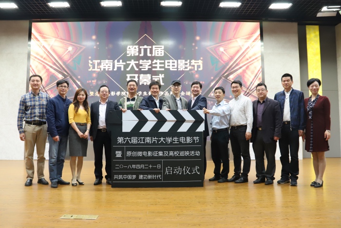全体领导、嘉宾共同上台为本届电影节的开幕启动仪式打板,正式启动第六届江南片大学生电影节。