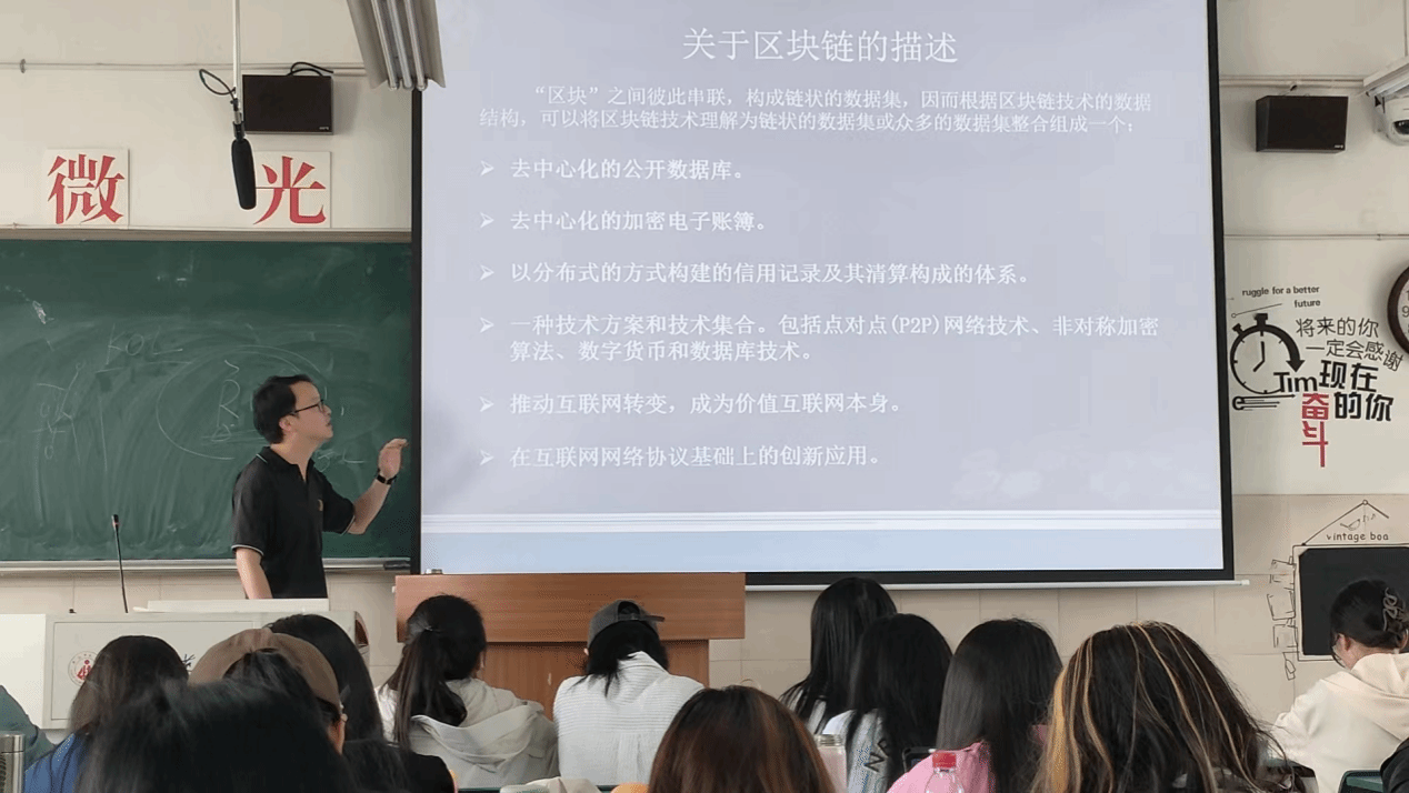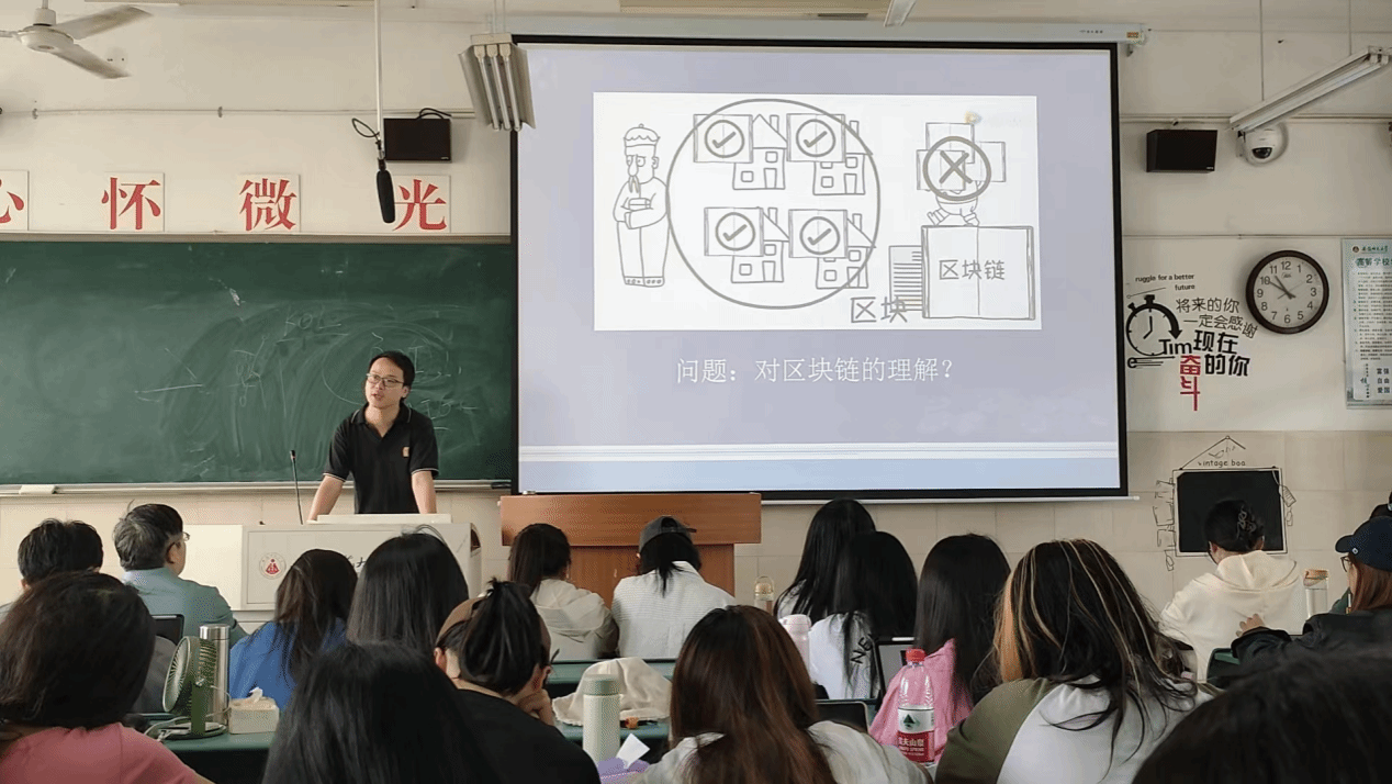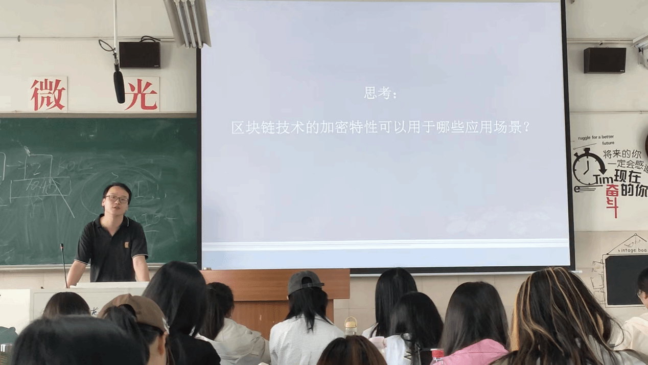 何老师将复杂的区块链技术拆解成易于理解的模块,并通过实际案例让同学们感受到了区块链技术的魅力。互动环节中,在关于如何想象区块链技术问题上,同学们积极思考,提出了许多新颖的想法,如将区块链技术想象成一个安全可靠、公开透明的超级账本等。何老师对同学们的观点给予了高度评价,并鼓励大家探索区块链技术在广告学中的更多可能性。在课堂的尾声,何老师留下了一个引人深思的问题:区块链技术的加密特性可以用于哪些应用场景?