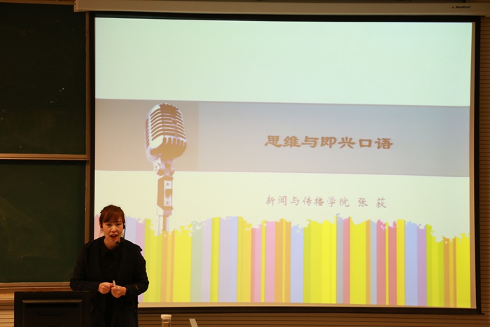 实训结束,课程临近尾声。张荻老师对同学们的精彩表现给予了高度评价,对出现的问题提出了针对性的改进意见。她最后总结道,听得见的语言技巧好比人的四肢躯干,而听不见的文化积累才是主持人即兴口语的“灵魂”,她激励同学们在日后的学习中认真思考,努力实践,并以自己的切身体会告诫大家:只有在幕后下大气力,才能在前台显真功夫!