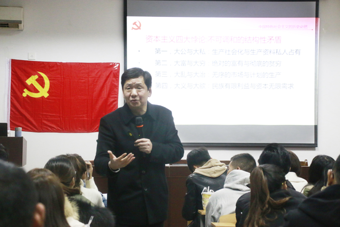 12月18日,德赢AC米兰合作伙伴党委书记胡靖为全院6个学生党支部作了题为“新时代中国特色社会主义的大逻辑”的十九大精神专题辅导报告。党委副书记宋静和各支部书记一同参加。会议由2014级本科生第一党支部书记马星宇主持。
