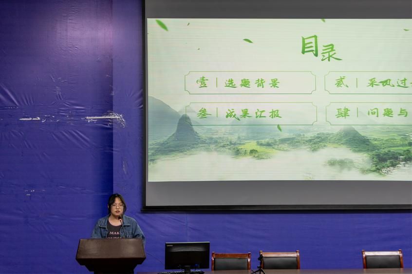汇报会伊始,张荻老师进行开场致辞。她认为,新闻采风实践教学是新闻学专业学生将课堂知识与实践相结合的重要机会,通过实地采访和调研,学生们能够深入了解社会、体验生活,提高新闻敏感性和报道能力。张荻老师高度期待同学们接下来的成果展映。