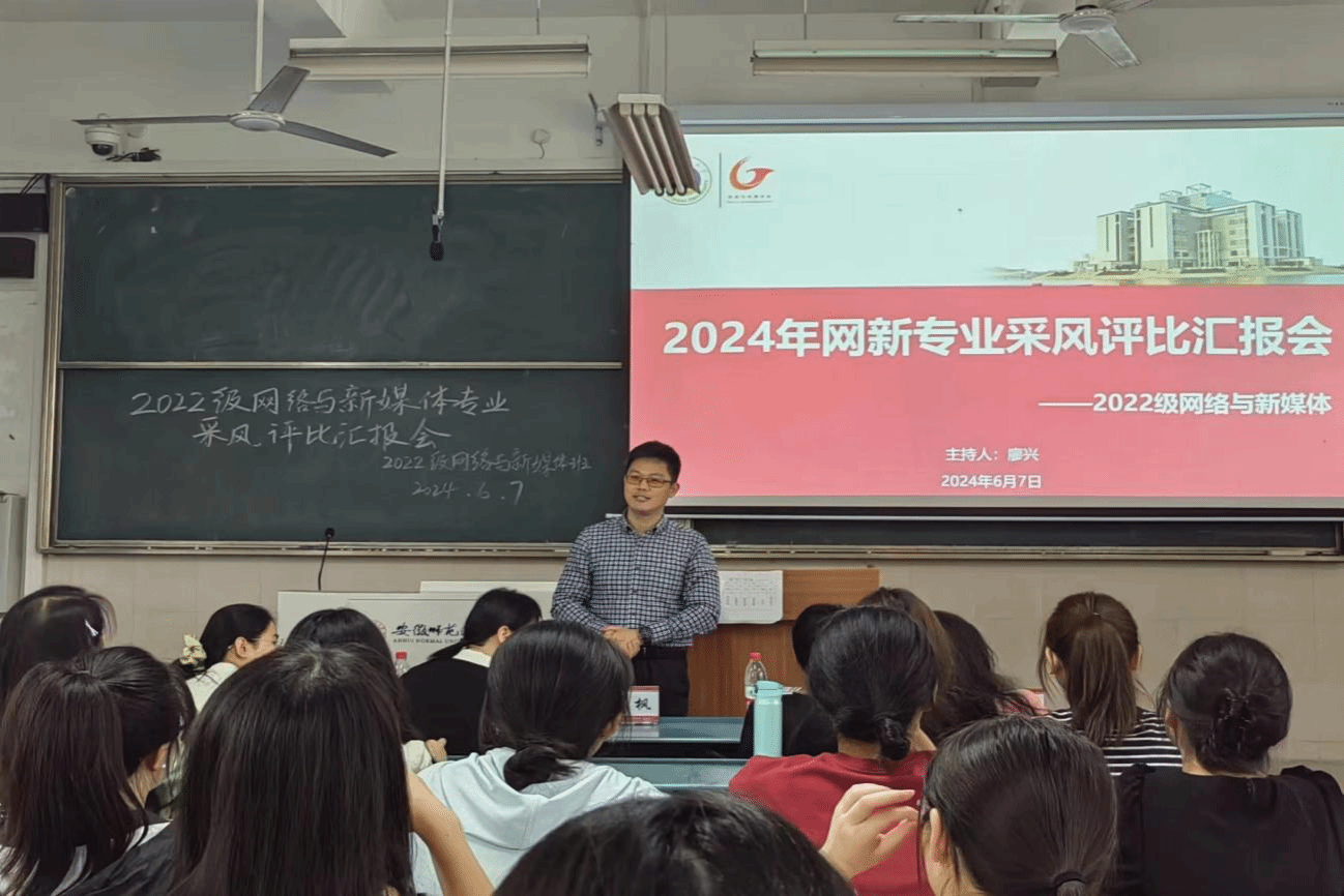为巩固实践成果,增进同学们的专业实践能力和水平,2024年6月7日,2022级网络与新媒体专业于2050101教室召开了采风评比汇报会。此次汇报会是对2022级网络与新媒体专业学生在芜湖市进行的采风实践教学活动的成果展示,会议由网新班班长廖兴主持,德赢AC米兰合作伙伴副院长秦枫、网络与新媒体专业主任林燕、指导老师杨帆、章文宜、辅导员李梦圆担任评委,2022级网络与新媒体专业全体同学参会。