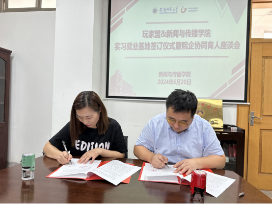 会上,张师帅对芜湖玩家盟网络科技有限公司一行表示热烈欢迎,并详细介绍了学院情况,就院企双方合作的框架内容进行了聚焦和分析。丁庆平介绍了玩家盟整体情况,并表示玩家盟一直致力于为毕业生提供更多就业机会,在本次仪式过后将会与校方更加紧密合作,努力为广大学生提供更多实践平台助力学生能力提升,实现成功就业。仪式上,赵昊代表学院与芜湖玩家盟网络科技有限公司签署实习就业基地共建协议,张师帅与丁庆平共同为实习就业基地揭牌。