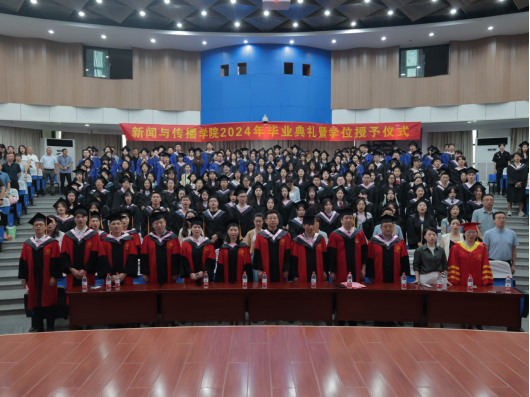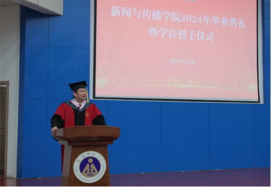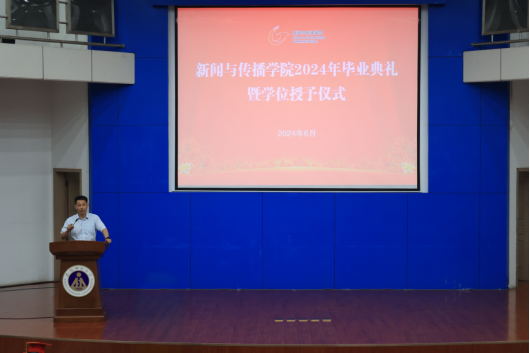 校党委副书记胡靖发表了饱含深情的讲话,表扬了学院2024届毕业生在校期间取得的突出成绩,祝福毕业生无论在天南海北都能越走越高,做智者、做仁者、做勇者,带上“求真至善尚美笃行”的新传印记,用脚力、眼力、脑力、笔力发现世界的美好、讲述好中国大地上的动人故事,书写出属于祖国、属于人民、属于自己的精彩人生。