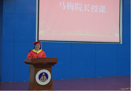 院长马梅为毕业生讲授大学最后一课,希望同学们继续勤奋努力、尚美笃行、勇敢担当、感恩前行,劝勉毕业生坚定信念、勇往直前、追求卓越,用心去感受世界、拓展自己、服务社会,祝福毕业生们都能过上幸福人生。