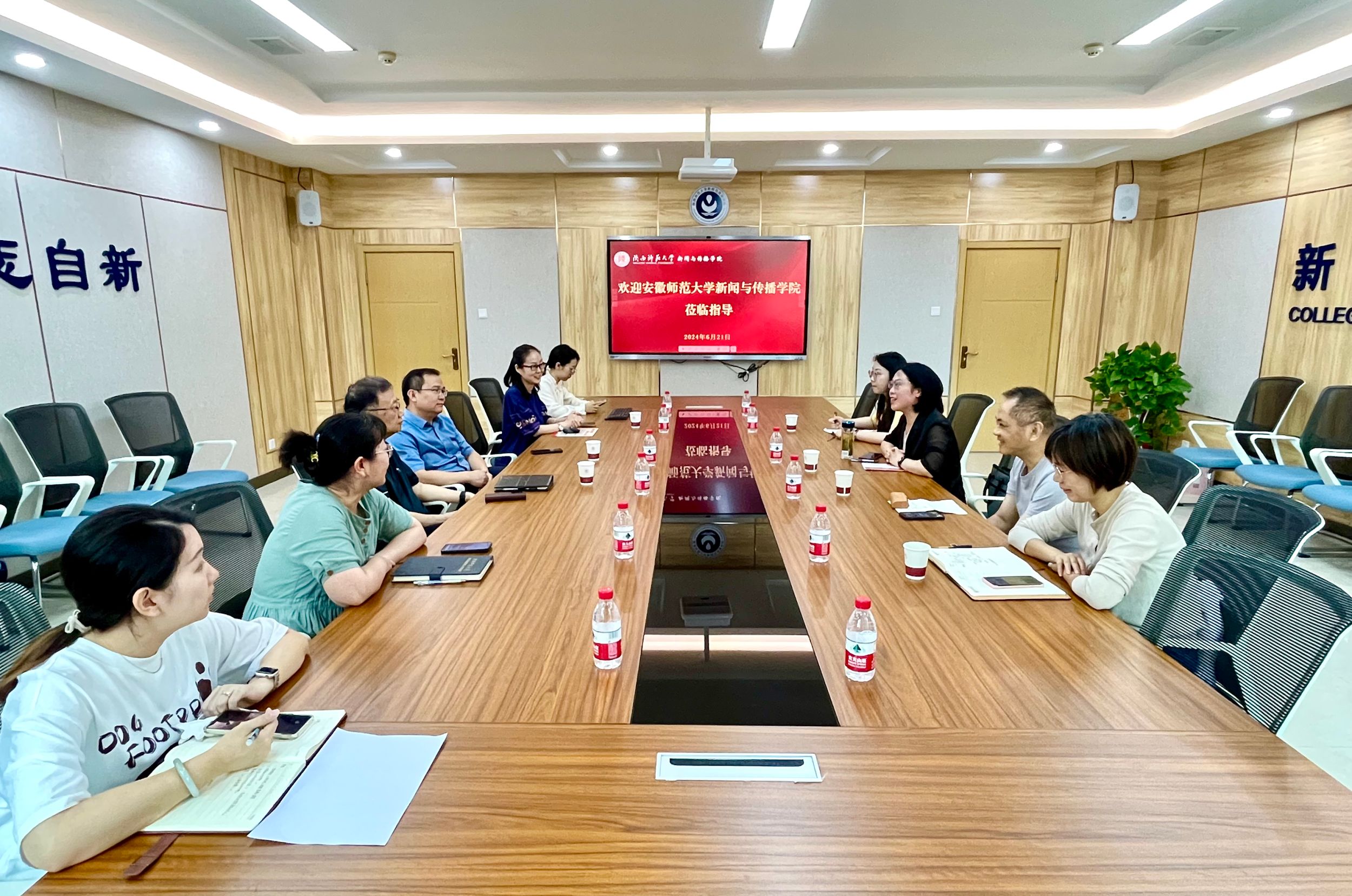 在陕西师范大学新闻传播学院,对方详细介绍了学院的基本情况、办学特色以及近年来在新闻传播学科建设方面取得的成果。通过听取教师教学经验分享,就新闻传播学科的发展趋势、人才培养模式等议题进行了深入探讨双方一致认为,新闻传播学科的发展需要学院间的相互支持与合作。