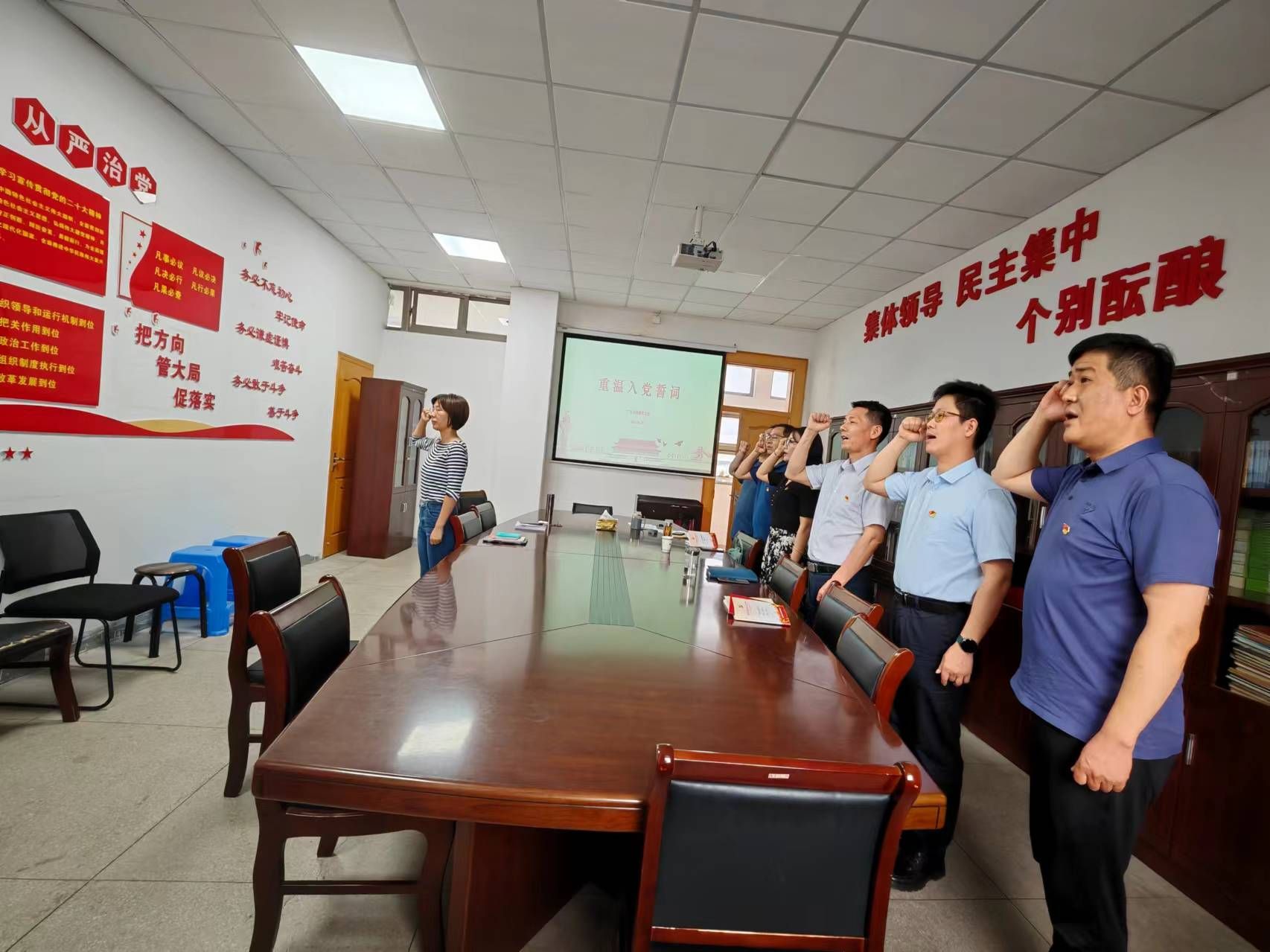 随后,全体教工党员在支部组织委员王玉洁的带领下,面对鲜红的党旗,庄严地举起右手,重温入党誓词。与会党员仿佛回到了入党时的那一刻,再次深刻感受到了那份对党的忠诚与热爱。通过重温入党誓词,大家纷纷表示要不忘初心使命,时刻以党员的标准严格要求自己,支部党员共同努力,推动支部工作再上新台阶。