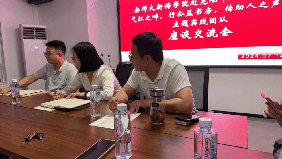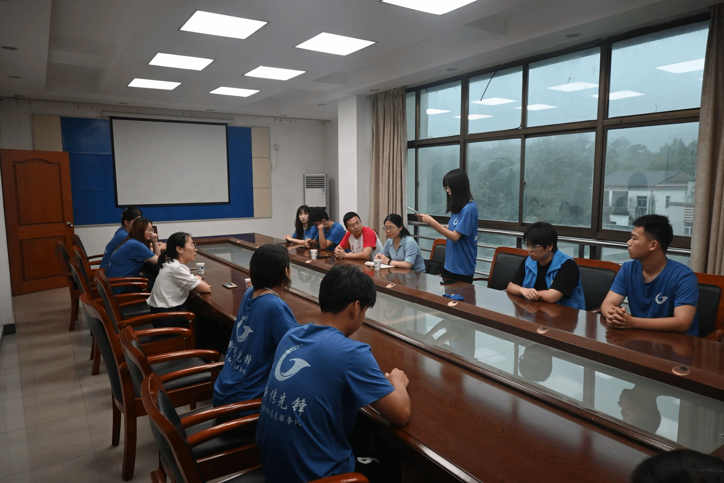 7月14日晚,马梅和马星宇一行又驱车从泾县赶赴南陵县弋江镇,看望指导正在该镇实践的“探弋江之畔,行公益书房,传助人之声”主题实践团队。受该镇党委书记周卫民的委托,弋江镇文旅办主任陈修原热情接待了马梅一行,并在该镇农耕文化体验馆召开座谈交流会。团队队长赵金哥代表团队作了阶段性总结,其他实践队员也结合任务分工畅谈了心得感受。