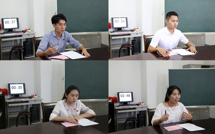 今年共有来自四个专业的七名学生入围学院的面试环节。考核中,每名考生有五分钟进行思考,五分钟进行答题。三道考题分别从宏观、中观和微观等三个角度,围绕考生对支教团的认识、理解、准备等全面考察了考生的理论基础、工作经验、语言表达和心理素质。面试中有的同学谈到了如何践行习近平“7·26”讲话精神,有的谈到大学积极从事志愿服务工作经历,有的结合自身在传媒素养普及培训班的支教经历表达了自己能够胜任西部支教任务的决心。最终,经过评委无记名打分排序,张书朋和刘成俊以第一和第二名的排名获得了参加校级面试的资格。