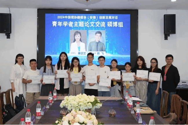 7月14日,在执行院长马梅教授的带领下,我院硕士研究生阳书玉、李娅携论文《从共在到共通:Z世代“在地化”交流的文化融通机理——基于“看中国·外国青年影像计划”的参与式观察》,陈子丹、陈盈、郑彬彬携论文《非遗短视频的生产动机、逻辑与策略》,纪薇唯携论文《短视频——滋润奇观的土壤:短视频奇观的表现、生成逻辑与反思》,李佳携论文《短视频平台苦难教育的失灵与价值转化》,窦子硕携论文《识别、生成与感知:AI助力VR影像体验变革》,本科生刘茜携论文《共同经验:短视频赋能文旅生产的价值逻辑、挑战与内容策略》参加了“2024中国视协融媒体(安徽)创新发展对话”大型学术活动。