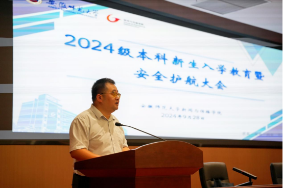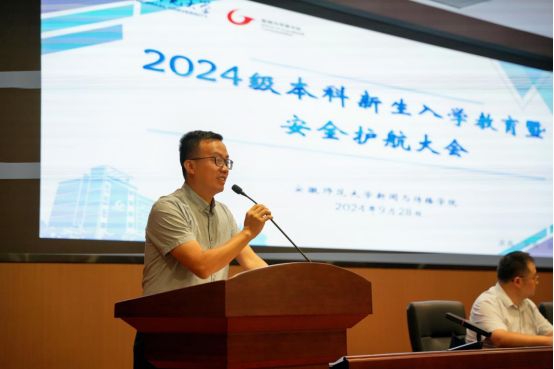 张师帅在主持会议时寄语2024级全体本科生,希望新同学们积极乐观、保持身心健康,认真学习专业知识,苦练专业实践技能,不断提升马克思主义新闻观认识实践水平,努力成长为党和人民放心的未来传媒人。