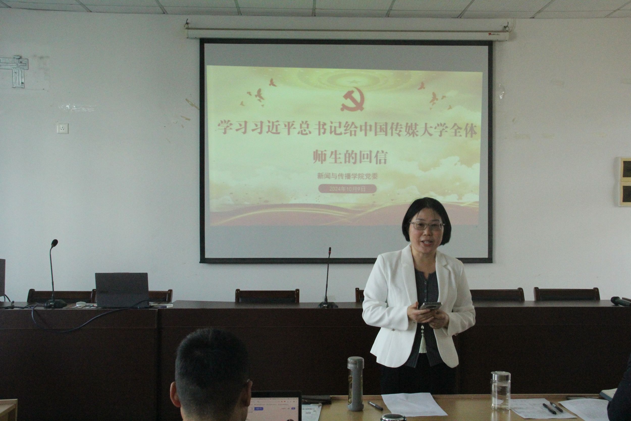 执行院长马梅领学了习近平总书记给中国传媒大学全体师生的回信精神,阐述了习近平总书记对传媒工作的殷切期望和嘱托。她强调,我们要牢记总书记的嘱托,坚定理想信念,勇于担当作为,夯实基础,拥抱新技术,更新教学能力,以各专业“交叉融合”助力高质量新闻传播人才培养,为实现中华民族伟大复兴的中国梦贡献自己的力量。