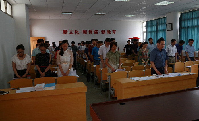 饮水思源,会上,胡靖带领全体教职工为前不久在北京逝世的前安徽省宣传部部长曹征海默哀,随后号召大家为部校共建下一阶段创造更多的成绩。(文/张雁 图/孙文 杨国丽)