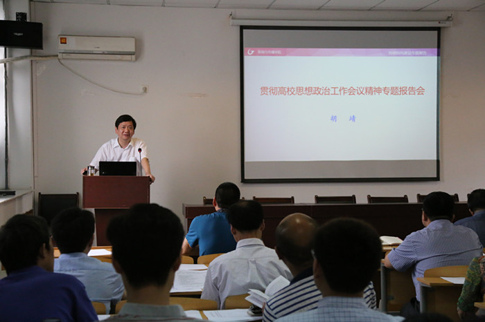 党委书记胡靖就“弘扬科学道德 遵守科研纪律”做专题党课。他认为,教师道德是一种职业道德,师之大德为报效国家、引领社会、传承先贤、启迪学生,结合习近平“四有好老师”的标准勉励全体教职工,就高校思政工作会议精神做了学习分享。