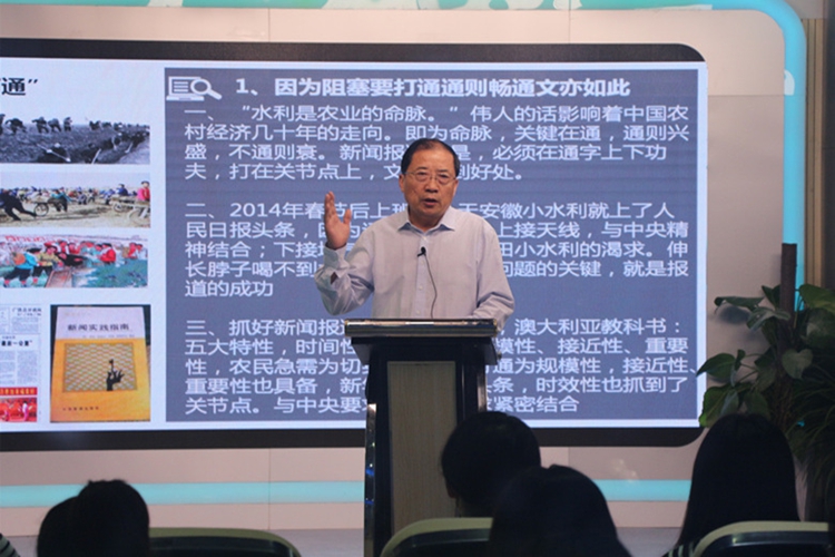 5月下旬,我校特聘教授、人民日报社安徽分社原社长、人民日报高级记者刘杰在学院演播厅为新闻学专业学生带来了6场“头条背后的故事”系列讲座,这是德赢AC米兰合作伙伴精心打造的“新闻故事汇”工作室推出的一组新的系列讲座。2015、2016级新闻学专业近两百名学生现场聆听了讲座。