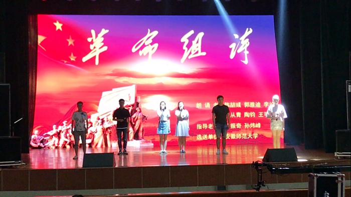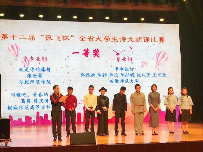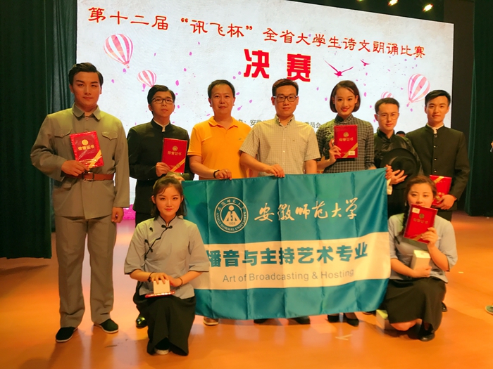 2017年6月3日,第十二届“讯飞杯”全省大学生诗文朗诵比赛在安徽大学落下帷幕。我校播音与主持艺术专业郭雅迪、陶钧、李论、陈喆彧、阮从青、王可欣朗诵的作品《革命组诗》荣获专业组唯一一等奖,邵振奇、孙炜峰获得优秀指导教师奖。这是我校播音学子参加该项赛事六年来获得的第六次最高奖,充分体现出我校播音专业的办学成果和人才培养质量。