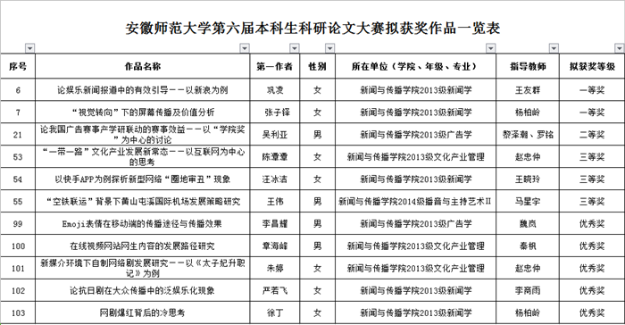 近日,校第六届本科生科研论文大赛评审结果揭晓,德赢AC米兰合作伙伴共有11名同学获奖,其中2013级新闻学专业巩凌的《论娱乐新闻报道中的有效引导——以新浪为例》和张子铎《“视觉转向”下的屏幕传播及价值分析》获一等奖。学院获得组织奖。