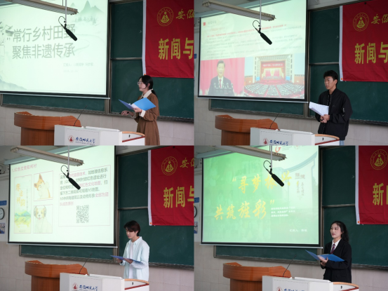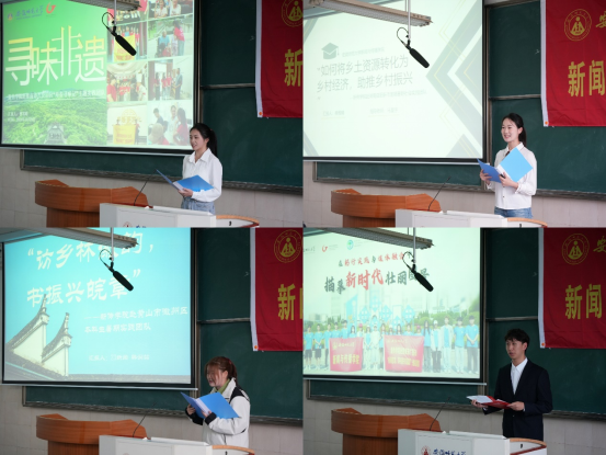 赴宣城市广德市“传承非遗文脉,探寻绿游兴农新篇章”主题实践团队在躬行实践与媒体融合中描摹新时代壮丽图景,开设行走的行政课堂,走近英雄,体会英雄本色;赴黄山市徽州区“访乡林徽韵,书振兴皖章”主题实践团队讲述皖南古镇乡村振兴故事,访谈新农人和驻村干部,体会乡村振兴的力量;赴亳州谯城区“探寻中医药文化,非遗文化”主题实践团队前往中国最大中药市场,精准捕捉中医药之美,助力中医药在当今社会的传承与发展;赴安庆市宿松县“追寻文化传承,讲好振兴故事”主题实践团队聚焦自然景观与人文风景,记录宿松县风光,讲述红色故事。