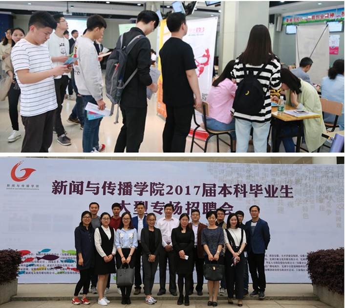 ——整合就业资源,召开专场招聘会。近日,德赢AC米兰合作伙伴在校大学生活动中心就业面试大厅举行2017届本科毕业生专场招聘会。该招聘会聚集了铜陵日报社广告中心、蚌埠市广播电视台、华强方特、网易安徽、三只松鼠、碧桂园等52家企事业单位,涵盖新闻媒体、文化传播、教育科技、礼仪服务等多个就业领域、地域覆盖安徽、江苏、浙江、上海等地,提供就业岗位近千个,吸引了学院新闻学、广告学、文化产业管理、动画、摄影、播音与主持艺术、空乘专业尚未落实就业的毕业生前来应聘。院党委书记胡靖、党委副书记宋静、副院长周伍、马梅、赵昊,各专业负责人、辅导员等亲临现场,与用人单位负责人及在场毕业生进行了亲切交流,了解企业单位用人需求,关注毕业生求职动向。