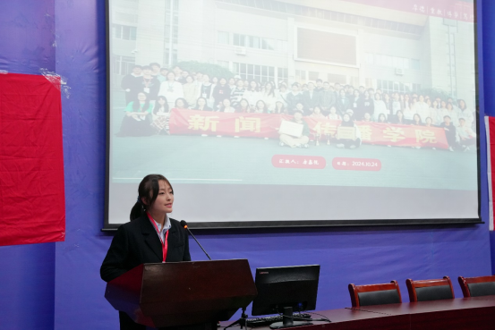 第四届学生会主席团成员房鑫悦代表第四届学生会进行学生会工作报告,她从提档升级勾勒新路径、团委指导推动新跨越、强基固本耕耘新动能、凝心聚力续写新传说四个方面对学生会工作成果进行了全面总结汇报。