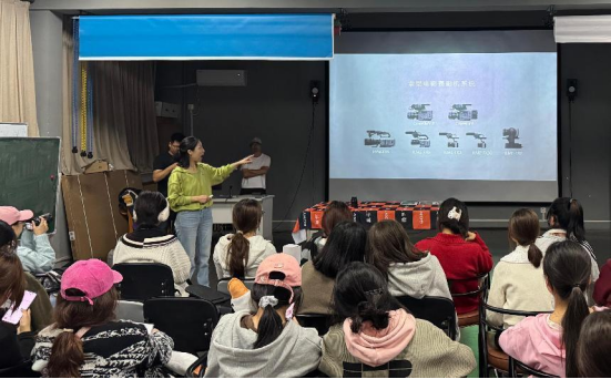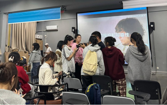 自新生入学以来,他们对专业设备的基本参数与使用技巧怀有浓厚的兴趣和迫切的求知欲。本次活动首先聚焦于专业设备的参数介绍和亲身体验。在这一精彩纷呈的环节中,谢建深入浅出地讲解了各类设备的功能,包括自动对焦的精准捕捉、低光环境下的卓越表现以及升格拍摄所带来的梦幻般视觉效果等。通过现场观摩与学习,同学们亲眼见证了这些技法所营造出的电影质感画面,收获颇丰。