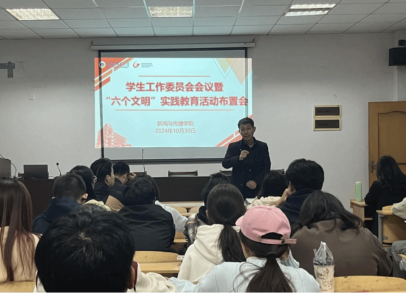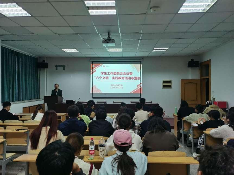 会上,辅导员、院学工委委员马星宇向与会者详细解读了学校大学生护航行动计划,强调了重点任务清单,总结了护航行动计划的目标和具体任务,强调了教工委员应在日常教育管理中围绕学生护航开展具体工作,学生委员应积极发挥“四自”功能,推进朋辈互助护航。辅导员、院学工委委员李梦圆专题解读了学校“六个文明”实践教育专项活动安排。该活动以“爱师大·共奋进”为主题,包含了专题教育、主题班会、学生个体谈话等一系列举措,以此加强校园管理,深入推进“六个文明”教育实践活动做细做实。同时,李梦圆对“六个文明”建设的内容与要求进行了详细解读。“六个文明”建设具体涵盖了文明教室、文明宿舍、文明就餐、文明交通、文明交往和文明上网六个方面,每个方面都有具体的行为规范和管理要求,旨在通过学生自我服务、自我教育和自我监督,营造一个健康、文明的校园环境。并强调指出学生委员要辅助辅导员做好相对应的工作,在集体中落实好责任,积极配合学院推进“六个文明”实践教育专项活动。