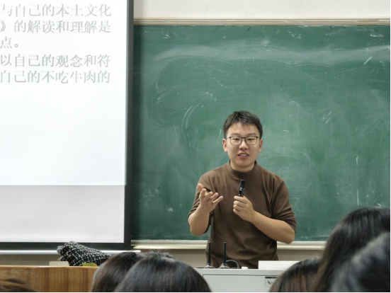 《传播符号学》是一门理论性极强的课程,为此朱飞虎在课前储备了丰富的实际案例,并向同学们推荐了三本相关专业书籍以供辅助学习。他灵活运用理论联系实际的教学方法,从贴近生活的例子谈起,激发同学们的独立思维,从而更为深入地理解课堂内容。整场课程十分紧凑,知识点层层递进,同学们紧跟课程节奏,并与老师积极互动。