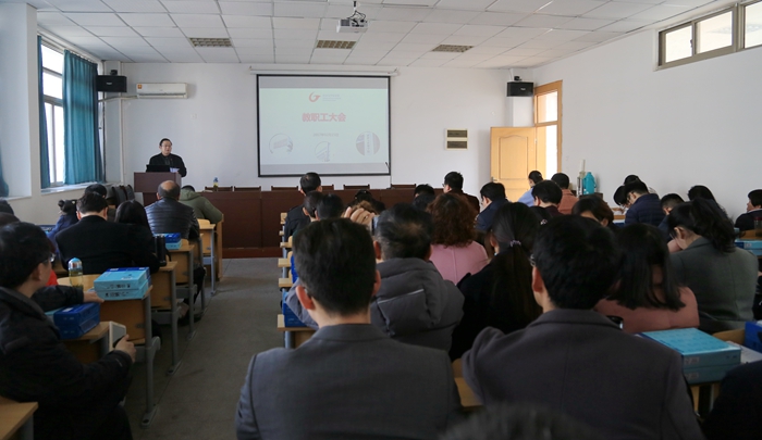 2月15日下午,学院召开了新学期第一次全院教职工大会。会上,执行院长杨柏岭肯定了全院教职员工在过去一年为学院所做的贡献,肯定了学院在部校共建新闻学院和“双一流”建设牵引下所取得的成绩。杨柏岭对2017年学院年度工作要点从六个方面做了解读:做好结合文章,抓党建促发展;深化部校共建,发挥平台领院的作用;开展教风建设年工作,夯实人才强院的基础;加大科研培育力度,深化内涵兴院的长效机制;创新教育载体,优化学生工作理念;规范学院各项日常工作,强化制度立院的力度。会上,行政副院长周伍对2016年年终津贴办法及所得税修订办法做了说明。