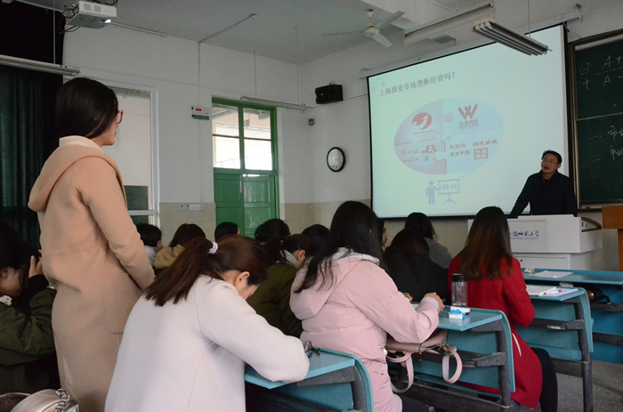 3月14日下午,在教学楼2040301教室,新闻学专业肖叶飞老师围绕《传媒经营与管理》中“传媒市场结构”教学内容,为14级新闻学专业学生讲授了一堂公开课。校督导团倪三好老师、执行院长杨柏岭、教学副院长马梅及新闻学专业部分教师到场观摩。