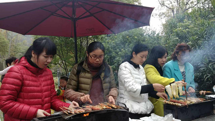 “草长莺飞二月天,拂堤杨柳醉春烟”。在龙山露营地,草地、花儿、杨柳都呈现春的气息,大家被一幅幅青翠欲滴的美景所折服,呼吸着清新的空气,漫步在林间小路上,欢乐声阵阵传出。中午,学院工会准备了烧烤、速冻水饺、零食、水果和一次性餐具,大家齐动手,准备着午餐,氛围非常和谐欢乐。