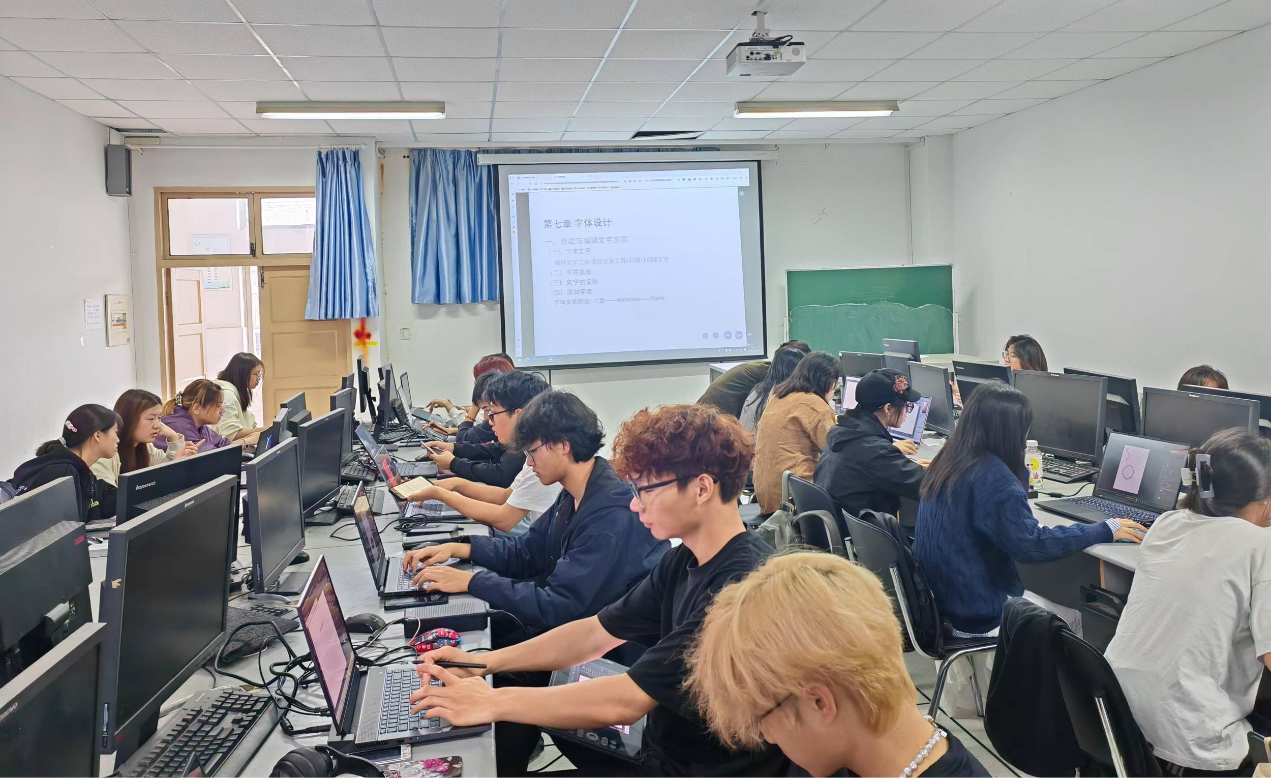 随后,陈若飞将教学重点聚焦于创建和编辑文字图层的基本方法。她将复杂的文字图层操作步骤抽丝剥茧,从创建的初始步骤到精细编辑各个环节,都进行了详尽的讲解和演示。实践环节,她耐心解答同学们在演示操作上的各种困惑。在她的悉心指导下,原本对设计软件操作感到生疏的同学逐渐变得熟练,而对字体设计理念模糊不清的同学也理清了思路。