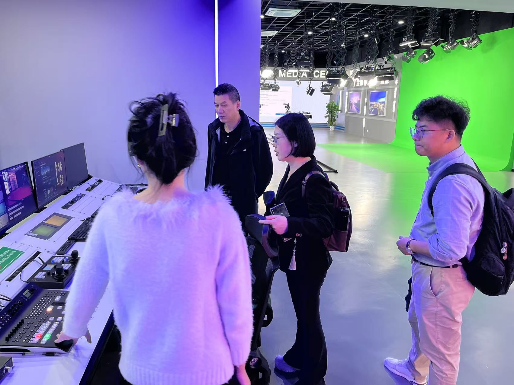 此外,学院一行还逐一参观了全媒体演播实验室、传媒实践教学与艺术创作中心、主持人节目创作综合实验室、数字影像创作实验室等。每到一处,都认真听取讲解,仔细观摩实验环境与设备,并就相关问题进行深入探讨。
