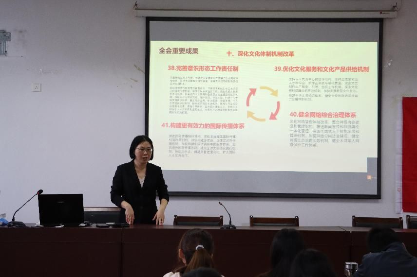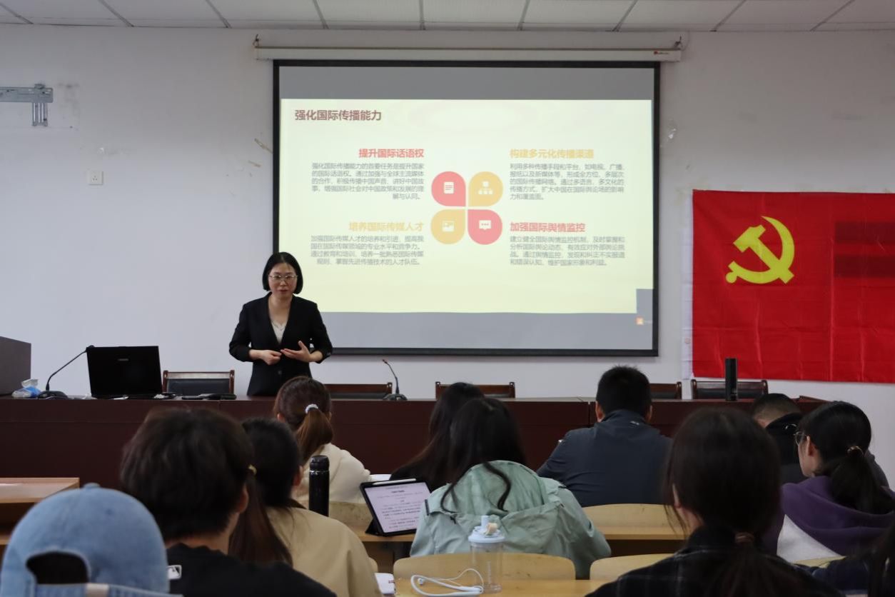 为深入学习党的二十届三中全会精神,让全体党员深学、细悟、笃行党的二十届三中全会精神,11月14日下午,学院党委副书记、执行院长马梅为新闻与播音主持本科生党支部全体成员开展党的二十届三中全会精神专题党课。