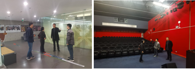 在同济大学艺术与传媒学院,调研团队走访了融合媒体、未来影像、未来媒体、跨感官媒体等实验室。这些实验室特色鲜明,既涵盖传统媒体的转型升级,又探索新媒体和未来媒体的发展趋势。在非平面媒体实验室、动作捕捉实验室、虚拟仿真实验室以及上海公益广告展览馆等地,调研团队详细了解了同济大学艺术与传媒学院和同济大学媒体实验与实践教学中心的建设思路、内容、工作机制及培养成果。