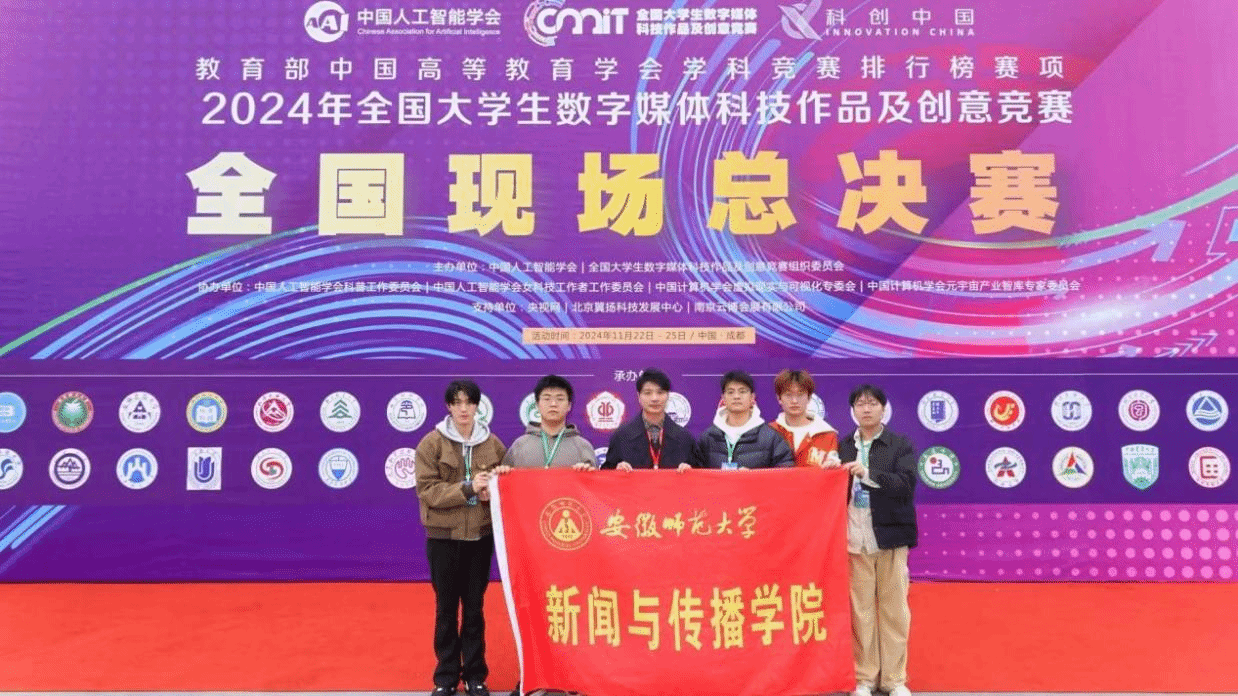 2024年11月22日至24日,第十二届全国大学生数字媒体科技作品及创意竞赛全国总决赛在成都成功举办。本次大赛由中国人工智能学会及全国大学生数字媒体科技作品及创意竞赛组委会联合主办,吸引了全国多所顶尖高校参与,共收到超过40万件参赛作品。经过层层筛选,来自清华大学、北京航空航天大学、中国科学院大学、西安交通大学、哈尔滨工业大学等高校的1500余组优秀作品晋级全国总决赛,并在21个赛道上展开激烈角逐。97位业内专家组成评审团,对参赛作品进行了全面而细致的评审。我院4支参赛队伍晋级现场路演答辩,表现出色,荣获国赛一等奖3项、二等奖1项,一等奖获奖率位列安徽省第一,另有9件作品获得三等奖,孙亮教授荣获国赛“优秀指导老师”称号。