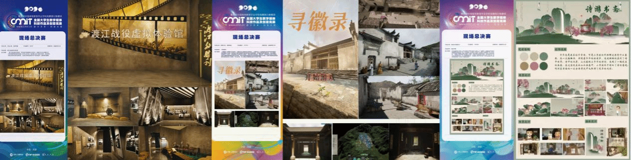 艺术学2024级研究生李斌、数字媒体艺术2021级研究生殷俊的交互作品《渡江战役虚拟体验馆》荣获“红色之旅,追梦铸魂”赛道一等奖,作品运用虚拟交互技术,将渡江战役纪念馆从传统的线下实地体验延伸至线上,克服了线下展览空间和展现内容的局限,探索了红色文化活态传承新路径;数字媒体艺术2021级研究生殷俊、动画专业2020级本科生王硕的游戏作品《寻徽录》荣获“民族文化,创新表达”赛道一等奖,作品引用徽州西递村落、花山迷窟等传说进行二次创作,将徽州文化习俗融入游戏,通过闯关游戏让玩家更多的了解徽州的地域文化;动画专业2021级吴頔、李宇全、徐艺盈的动画作品《诗游书斋》荣获影视与动漫设计赛道一等奖,作品通过水墨场景与古典诗句结合,构建一个诗词世界,诗画交融来表达古诗中的韵味,传播中华诗词文化之美;动画专业2022级史国振的数字艺术作品《粉色天使》荣获数字艺术表现赛道二等奖,作品运用三维数字技术,采用多元化、碎片化的思考,运用“巨婴”“羽翼”“镂空裙子”“盔壳”等元素展现当下年轻人复杂的状态,不愿接受现实与平凡,渴望超越现状。