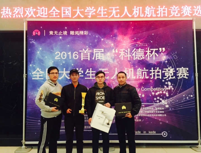 在刚落下帷幕的2016首届全国大学生无人机航拍竞赛中,新传学子聂朝鑫、杨陆城的影视作品《冬日起飞》以巧妙的构思、精湛的拍摄、唯美的画面荣获一等奖殊荣,并被授予了代表此次竞赛唯一最高声誉的“科德杯”。周仁熊、倪博昊的视频短片《EXPLORE》和组图《王的山田》分获三等奖。