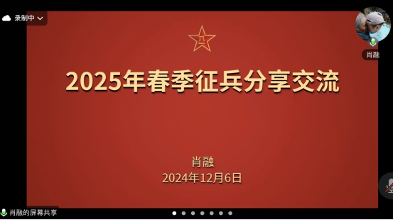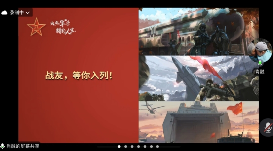 肖融向参会师生展现了自己在军队的丰富生活。“当兵五年有四年半我都在和新闻打交道”,肖融如是说。作为一名新闻的“门外汉”,肖融硬是凭借着一股干劲,成为了一名优秀的“通讯员”,他的新闻作品多次在国家级主流媒体发表,受到部队领导的一致好评。“选择了军队,就是选择了与人民军队齐进步,与共和国共成长。选择军队肯定没有错”,分享最后,他再次向大家发出邀请。