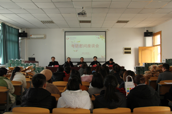 最后,宋静结合对学院往年考研录取情况的分析,鼓励大家坚持到底,同时叮嘱考研学子要保存好精力,相信自己的实力,并表示非常期待同学们能考研成功,做好人生的选择。在慰问会临近尾声之际,学院的领导老师们亲自为考研学子们发放牛奶、面包等慰问品,并与同学们合影留念。毕业生们也很开心地表示,一定认真应考,不辜负学院领导老师的期望。