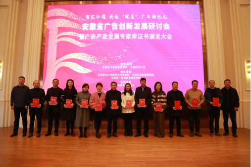 吴杭宣读了安徽省市场监督管理局广告产业发展专家库成员名单和《安徽省广告产业发展专家库工作规则(试行)》。在专家库成员表态发言环节,芜湖学院广告教研室主任胡群和安徽悟空广告传媒有限公司总经理崔苗分别从学界和业界的角度,表达了对加入专家库的荣幸和责任,表示将积极为安徽省广告产业发展贡献力量。接着,举行了广告产业发展专家库证书颁发仪式,各位专家库成员依次上台领取证书,并合影留念。