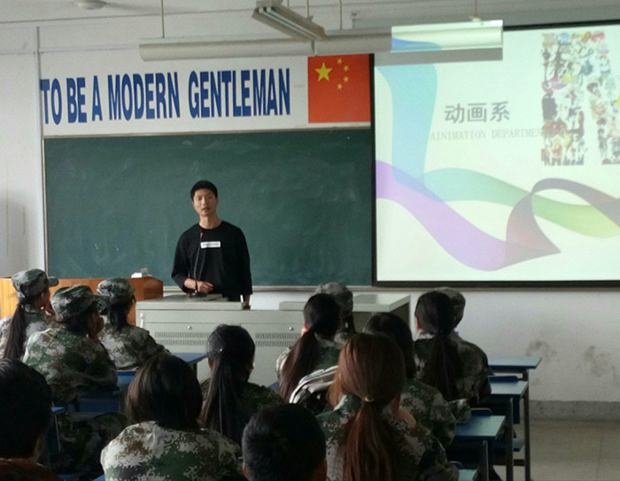 孙亮对我校动画专业的发展历史、在职教师、教授课程、就业情况等方面进行了介绍,并对2016级新生提出了具体要求及个人发展的期望。随后,孙亮向同学们展示了许多优秀学长的代表作品以及在各个大赛参赛的获奖情况,鼓励大家在专业学习上积极突破,敢于挑战。孙亮老师指出,动画专业的学习必须做到理论与实践相结合,要不断拓展自身,认真对待每一件事,具有作品意识,认真对待每一次作业,以让作业成为作品的态度去做每一件动漫作品。在新生提问环节中,同学们对自己在大学生活、专业学习、就业等各方面遇到的困难疑惑进行了提问,孙亮耐心地给予了详细答复。