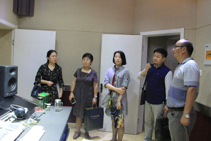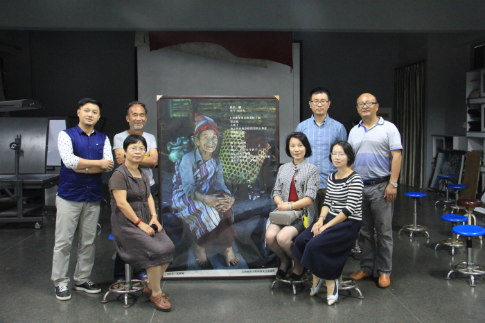 天津工业大学一行还来到学院教学实验楼,一同参观了学院的小型演播厅、新媒体编辑室、录音室等多个学生实践场所。双方交换意见,分享经验。在摄影教室里,大家见到了摄影系老师沈醒狮,在听沈醒狮讲述其拍摄独龙族的所见所闻时,一行人在摄影教室同沈醒狮的名作合影留念。(文/图 宣智丽)