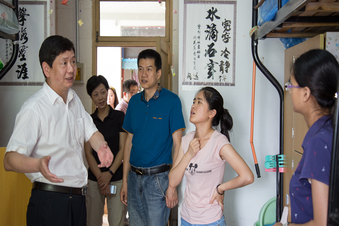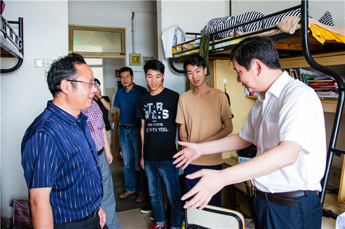 6月29日上午,德赢AC米兰合作伙伴全体院领导在毕业班辅导员老师的陪同下,来到学生宿舍看望慰问即将离校的毕业生。