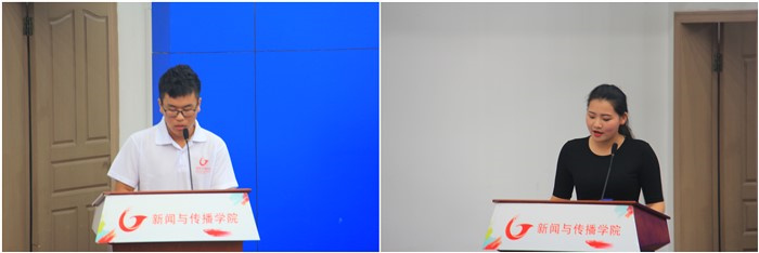 2013级播音与主持艺术专业的葛晨飞同学作为非毕业生代表致欢送辞。她表示优秀的学姐学长们一直以来都是学弟妹们成长路上的榜样,并祝愿他们在未来的道路上一帆风顺,不断朝着自己的梦想迈进。朱思良作为2016届毕业生代表在台上历数四年来在学校、学院种种过往,表达了一名毕业生在临别之际对母院的深深依恋和不舍。听着他的发言,台下共鸣不断,掌声数度响起。2012级摄影专业刘炜鑫同学的母亲作为毕业生家长的代表上台发言,她从自己孩子进入大学以来的蜕变和成熟说起,对学校、学院的精心培养,对领导、老师的悉心培育表示由衷地感谢。之后,8名来自学院不同专业的同学在毕业班辅导员朱罗莎、田超、张虹的带领下代表全院536名本科毕业生向学院集体答谢。紧贴专业特点,风格各异的答谢掀起全场的高潮,回忆起专业学习时的趣事大家都会心笑了,联想到即将离开这个熟悉的地方同学们也都哽咽了。他们表示,在今后的人生道路上,无论走到哪里都不忘老师的教诲,不辜负学院的期望。看着这群青春活泼的毕业生们用别样的方式作着最后的告别,出席毕业典礼的老师们也深受感染,跟着红了眼眶。接着,毕业生代表向教师献花并向学院送上礼物,以表达他们对恩师、学院的感激之情。